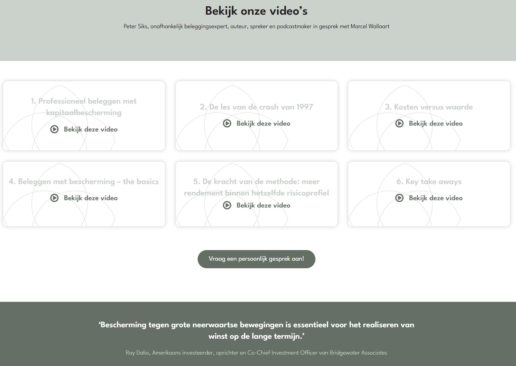 Bij Quintessence Vermogensbeheer gaan we verder dan alleen cashflow genereren. We kunnen voor cliënten een verzekering op het beleggingskapitaal realiseren. Dat betekent dat, ongeacht marktschommelingen, een groot deel van hun vermogen is beschermd tegen sterke koersdalingen. Hierdoor kunnen zij profiteren van de uitkeringen én (gedeeltelijke) groei, terwijl de zekerheid over hun kapitaal behouden blijft. Dit is een onderscheidend totaalconcept: cashflow waar nodig, groeipotentieel waar mogelijk, én kapitaalrust gegarandeerd via verzekering.